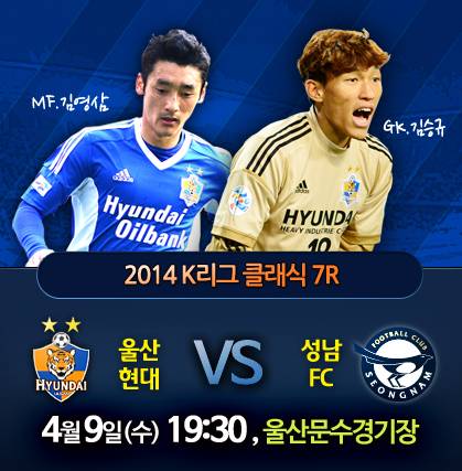 -4¿ù 9ÀÏ(¼ö) ¿ÀÈÄ 7½Ã 30ºÐ (¿ï»êÇö´ë VS ¼º³²FC)