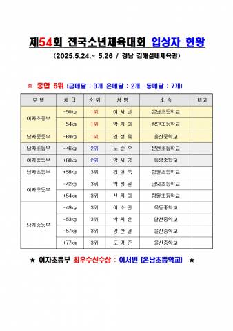 2087[¼±ÅÃ] ¡ÚÁ¦54ȸ Àü±¹¼Ò³âüÀ°´ëȸ ÀÔ»óÀÚ ÇöȲ¡Ú25-05-287830