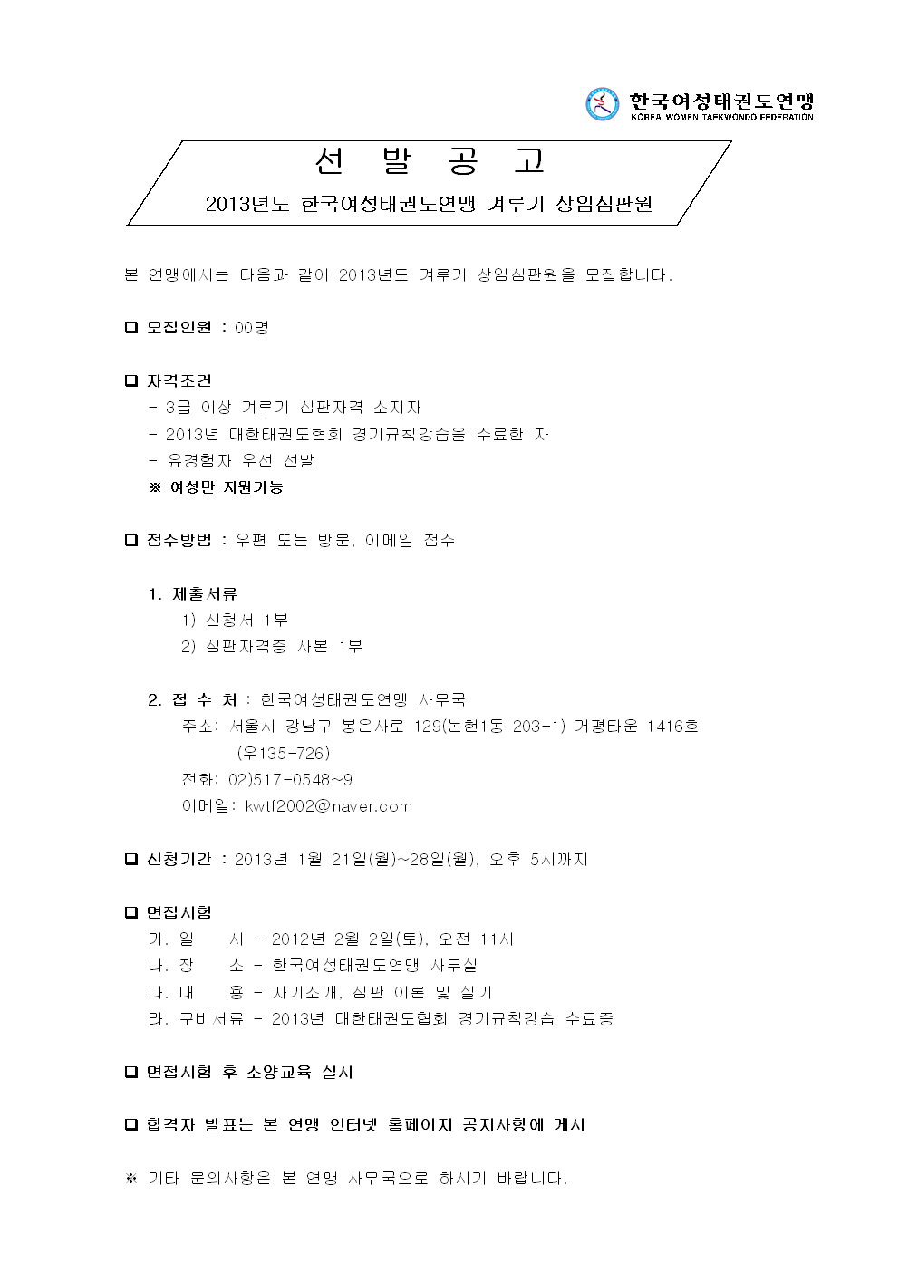 2013³â Çѱ¹¿©¼ºÅ±ǵµ¿¬¸Í °Ü·ç±â »óÀÓ½ÉÆÇ¿ø ¼±¹ß°ø°í